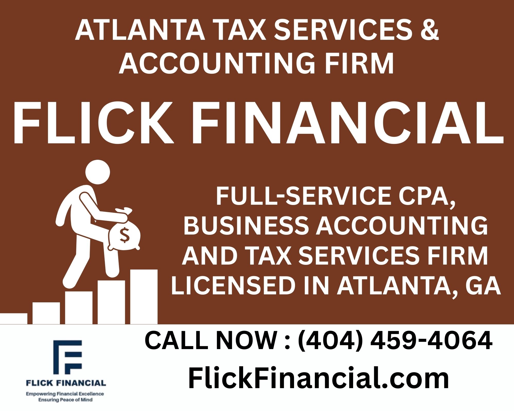 Flick Financial is proud to offer a variety of financial services to Atlanta area businesses including CFO consulting, accounting and bookkeeping, and tax preparation and planning.